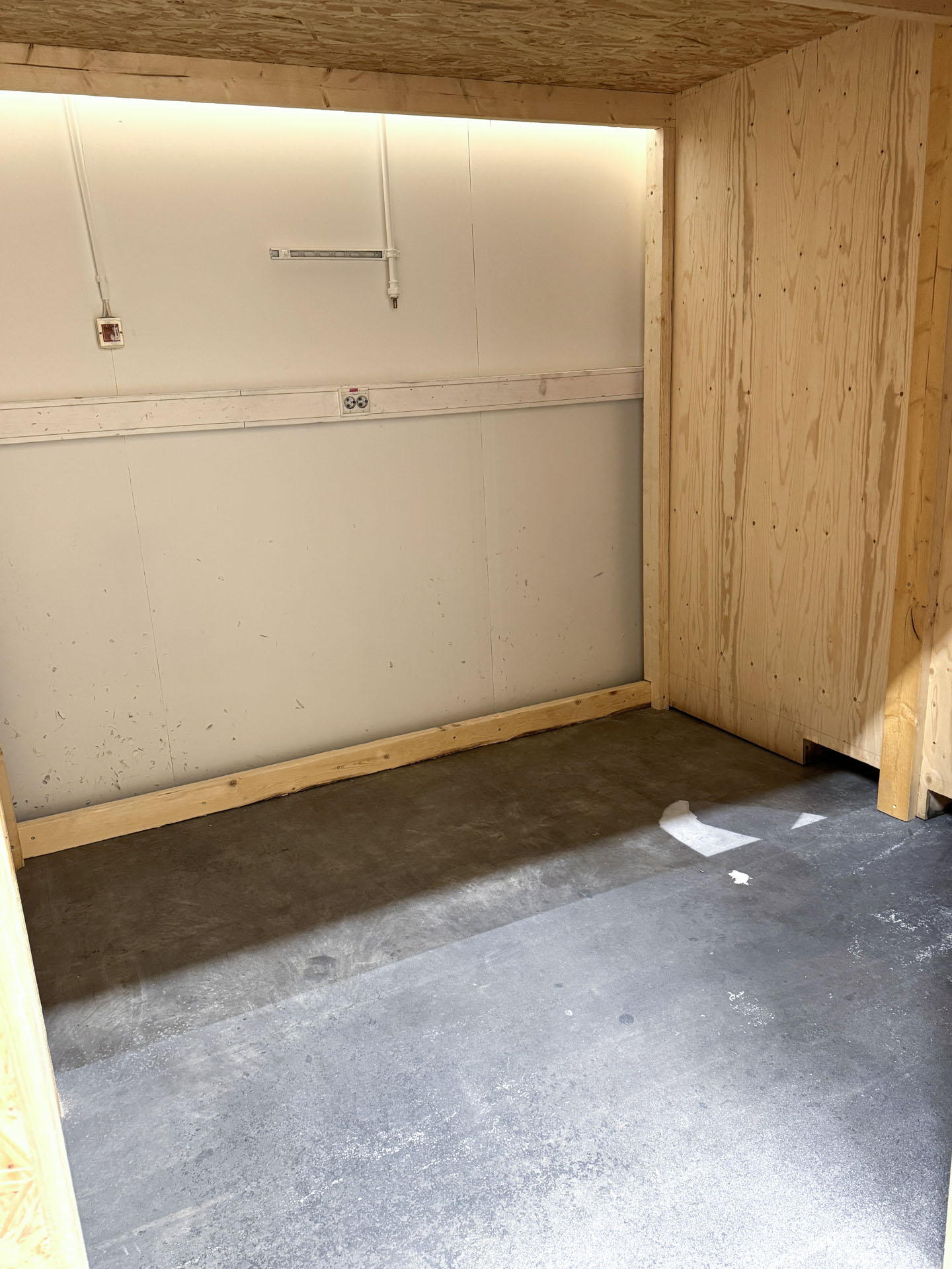 -Varaston korkeus 205,5cm, leveys 250cm ja syvyys 240cm.